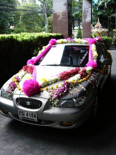 Hochzeitsauto im Hotel-Eingangbereich |