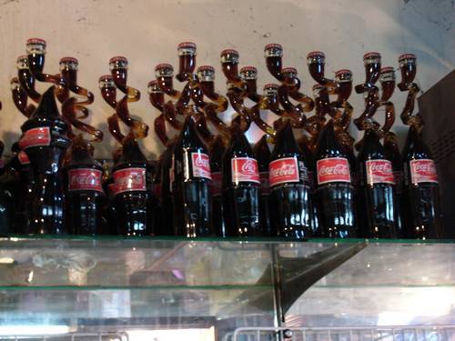 Cola gibt es in einer Plastiktüte,