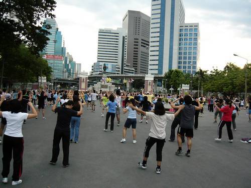 wir in den Lumphini Park |