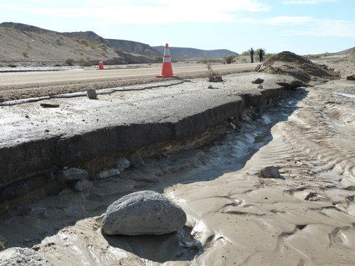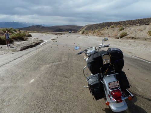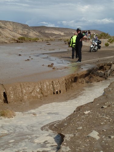 - kurz hinter dem Death Valley West-Eingang ist die Straße wegen Überflutung gesperrt