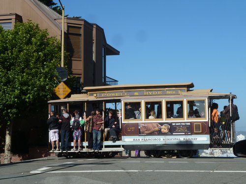 wir fahren die Lombard-Street hinauf