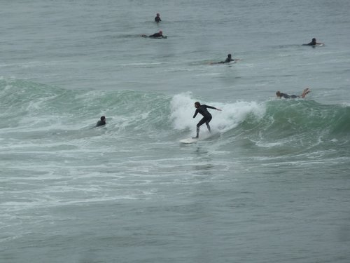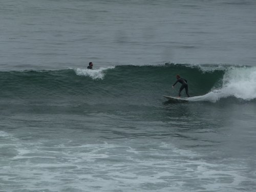 auf auf der anderen Straßenseite geht es beim Wellenreiten hoch her